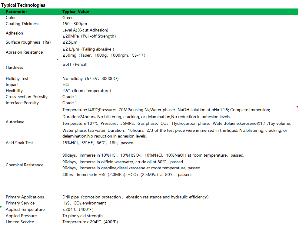 A hydrogen sulfide-resistant internal coating for drill pipe, primarily designed for high-temperature, high-pressure environments containing H?S and CO?.
