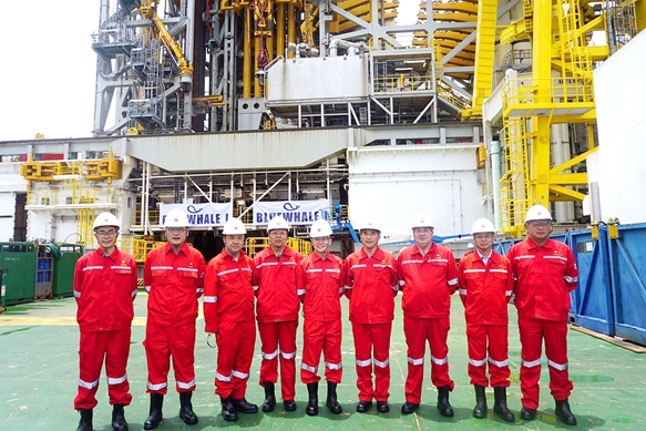 在“藍鯨1號”鉆井平臺上合影