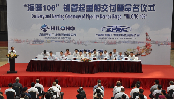 海隆集團董事長張軍、執行總裁汪濤、振華重工常務副總裁戴文凱、劉建波等兩家公司的高層領導,以及來自中海油、中石化、美國船級社、中國船級社、航道局、上海市寶山工業園區等公司和單位的代表出席了此次交船暨命名儀式。